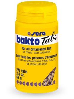 Способ применения: кормите в течение 7 дней или дольше, если требуется лечебными таблетками Бакто Табс вместо обычного корма, несколько раз в день. Рыбу следует кормить исключительно Sera bakto tabs до полного выздоровления. Если при лечении в отсаднике таблетка не съедена сразу, то она должна быть удалена из воды немедленно, иначе это может привести к сильной порче воды.