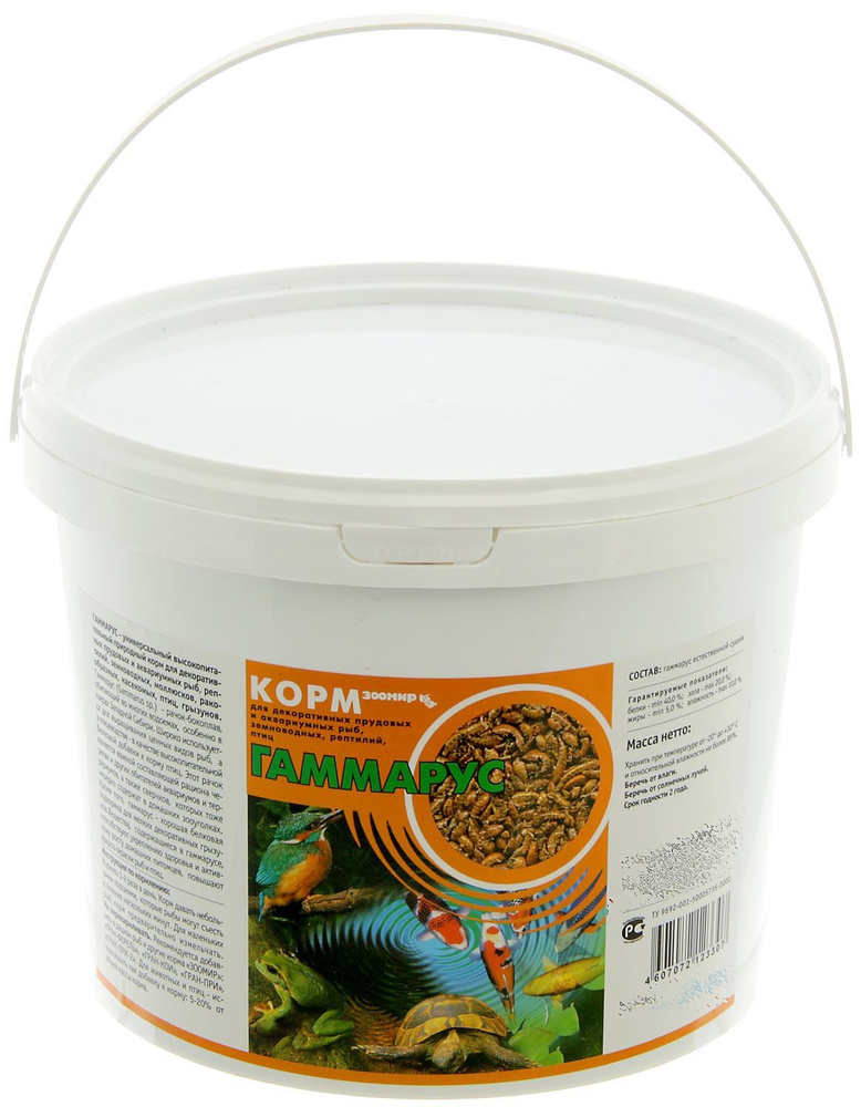 ЗООМИР ГАММАРУС природный корм для рыб, рептилий, земноводных, птиц, 10 литров