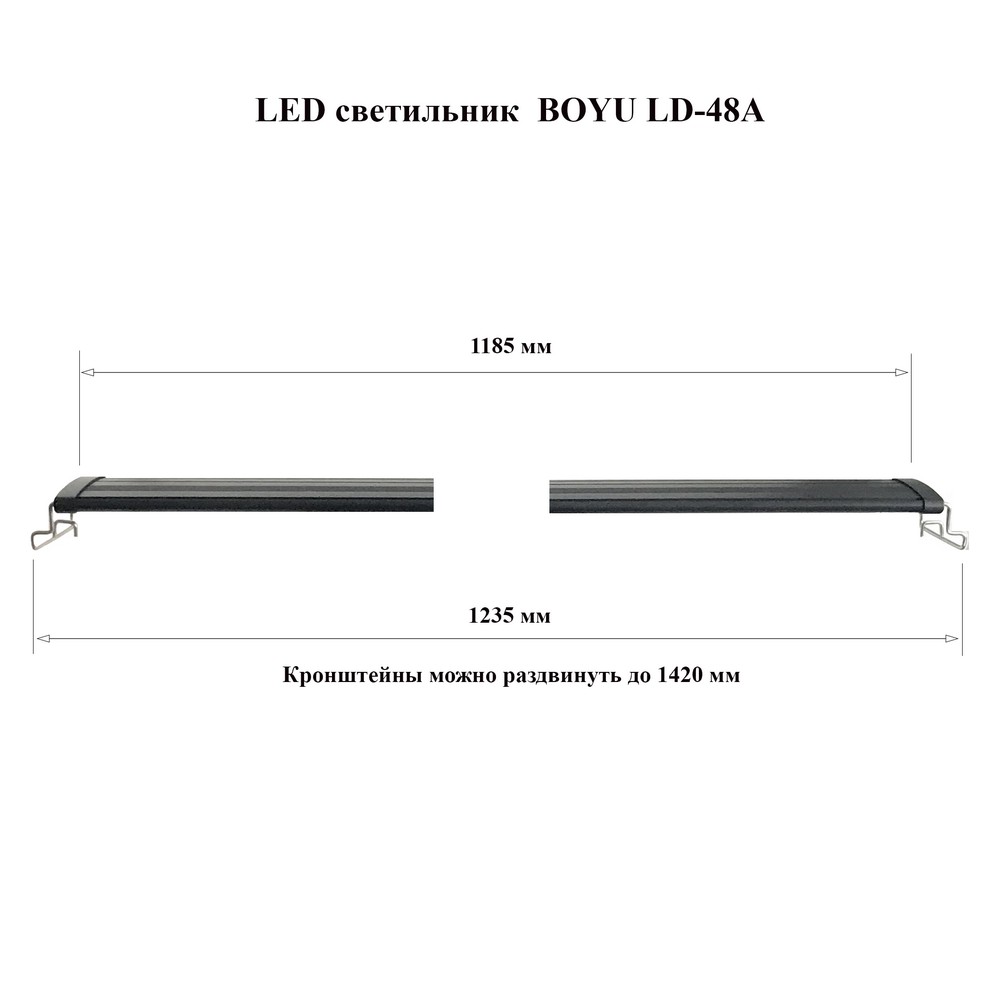 Длина: 1185 мм (без кронштейнов), 1235-1420 мм (с кронштейнами)