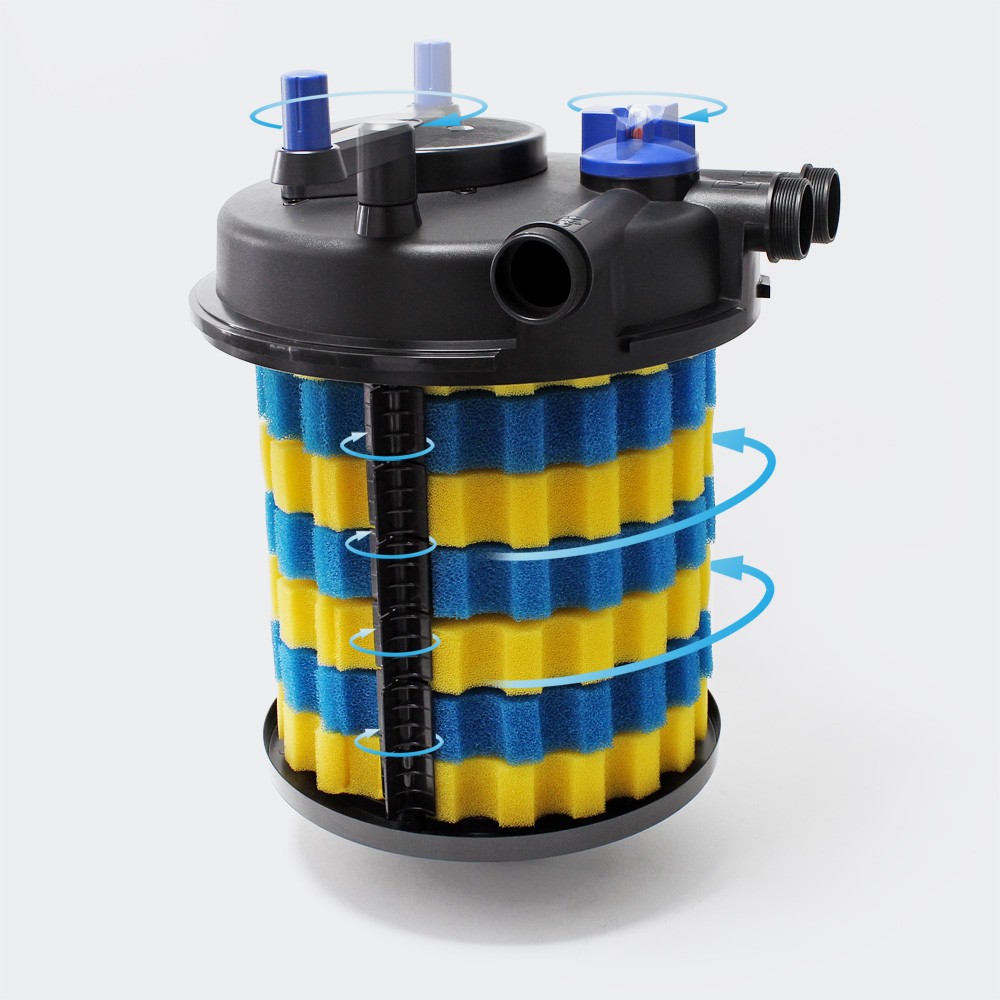 Прудовые фильтры SunSun сочетают механическую и биологическую очистку. При первом запуске пруда лучше воспользоваться так называемыми «биостартерами» (бактериями выращенными в лабораторных условиях). Их использование может значительно ускорить становление баланса в пруду.