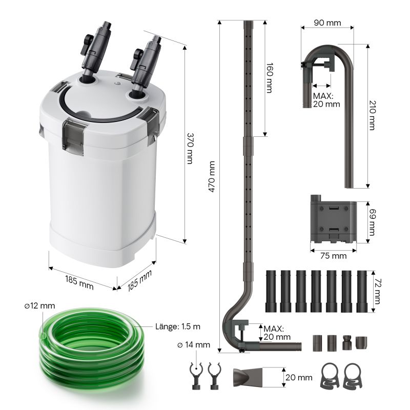 Фильтр примечателен тем, что имеет отдельную помпу, которая погружается в аквариум.