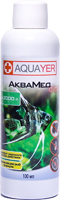 AQUAYER Аквамед – концентрированный препарат широкого спектра действия. Эффективен против эктопаразитов, включая ихтиофтириоз (ихтик, манка), а также против других внешних возбудителей – грибков, бактерий, вирусов (например, плавниковая гниль).