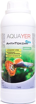 AQUAYER АнтиТоксин Vita – используется для подготовки воды безопасной для рыб в аквариуме. Особенная формула позволяет моментально устранить хлор и хлорамин, а также токсичные для аквариумных обитателей тяжелые металлы из водопроводной воды, без необходимости отстаивания воды. Наличие витамина В1 смягчает стресс рыб как при подмене воды, так и при пересадки рыб в новый аквариум. Регулярное использование препарата позволяет избежать заболеваний рыб.