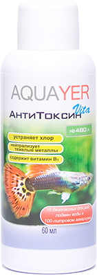 AQUAYER АнтиТоксин Vita – используется для подготовки воды безопасной для рыб в аквариуме. Особенная формула позволяет моментально устранить хлор и хлорамин, а также токсичные для аквариумных обитателей тяжелые металлы из водопроводной воды, без необходимости отстаивания воды. Наличие витамина В1 смягчает стресс рыб как при подмене воды, так и при пересадки рыб в новый аквариум. Регулярное использование препарата позволяет избежать заболеваний рыб.
