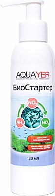 AQUAYER Биостартер – препарат для быстрого установления азотного цикла в новых аквариумах и аквариумах с нарушенным биобалансом (наличие белой мути). Уменьшает уровень вредного аммиака и нитрита в аквариуме посредством заселения поглощающих их бактерий. Препарат позволяет запускать рыб в первые дни запуска аквариума.