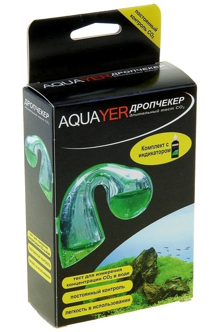 Комплект AQUAYER Дропчекер и AQUAYER Индикатор СО2 - Устройство постоянного контроля за концентрацией углекислого газа (СО2) в аквариумной воде и индикаторная жидкость к нему. Удобное решение для аквариумов с растениями. Один раз помещенный в аквариум AQUAYER Дропчекер позволяет в любую минуту оценить наличие достаточной концентрации СО2 в аквариуме.