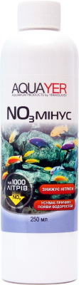 AQUAYER NO3 минус – (нитрат минус) — эффективное средство для снижения концентрации нитратов в аквариумной воде. Действует путем стимуляции жизнедеятельности бактерий-денитрификаторов, которые всегда присутствуют в зрелом аквариуме и поглощают нитраты. Чем больше концентрация нитратов в аквариумной воде, тем эффективней действует средство.