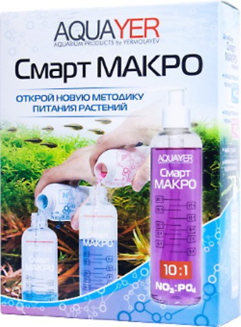 AQUAYER Смарт МАКРО - это удобрение которое открывает новую методику питания растений в аквариуме. Эта методика построена на принципе, что разные виды растений могут требовать разное соотношение основных питательных макроэлементов – азота и фосфора (в виде нитратов и фосфатов).