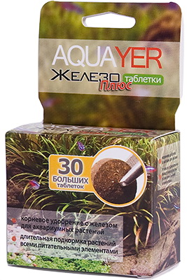 AQUAYER Таблетки Железо плюс представляют собой более концентрированную и таблетированную форму AQUAYER Питательная подложка с увеличенным содержанием железа и калия. AQUAYER Таблетки Железо плюс это удобный способ внесения в грунт питательных элементов для выборочных растений в уже запущенном аквариуме. Корни получают питание с поверхности грунтовых удобрений, а площадь поверхности порошка больше чем у таблеток или шаров. AQUAYER Таблетки Железо плюс разработаны таким образом, чтобы они быстро распадались в порошок сразу после внесения в грунт аквариума.