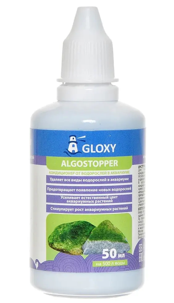 Кондиционер от водорослей в аквариуме Gloxy Algostopper удаляет все виды водорослей в аквариуме и предотвращает появление новых, усиливает естественный цвет аквариумных растений и стимулирует рост аквариумных растений.