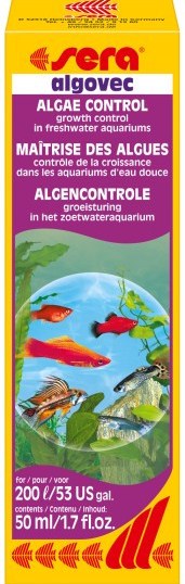 Sera алговек является эффективным средством контроля за излишним разрастанием водорослей, оставаясь при этом безопасным для рыб и растений.