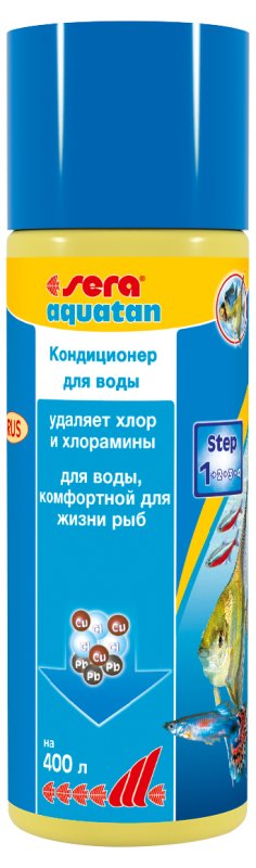 Sera акуатан немедленно удаляет вредные вещества и превращает водопроводную воду в здоровую аквариумную воду, комфортную для жизни рыб. Он гарантирует оптимальные условия для жизни рыб, беспозвоночных, растений, а также полезных микроорганизмов.