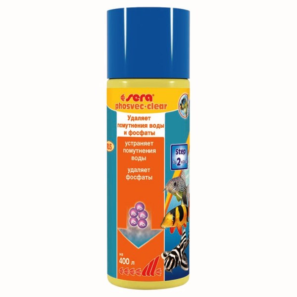 sera фосфекклир немедленно связывает частицы, вызывающие помутнение воды и, таким образом, делает возможным улавливание их фильтром. В тоже время он удаляет излишки фосфатов, чем предотвращает разрастание водорослей. Для постоянно чистой, кристально прозрачной воды.