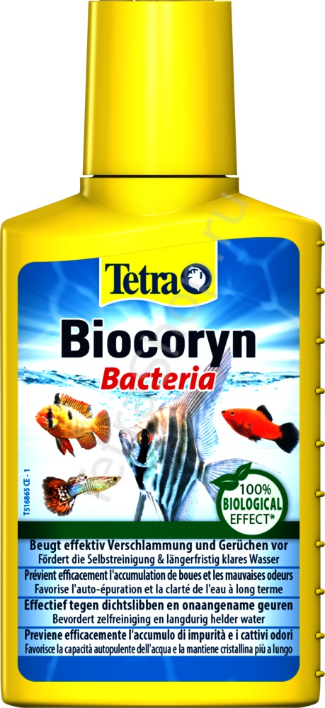 Тетра Биокорин обладает 100% биологическим действием, поскольку содержит споры непатогенных бактерий рода Bacillus, которые естественным образом встречаются в почве, в разлагающемся растительном материале (например, компосте), а также в природных водоемах. Эти бактерии были выбраны для того, чтобы обеспечить целенаправленное и быстрое разложение органических веществ, присутствующих в водных системах. Концентрированная суспензия спор Tetra Biocoryn содержит более 10 миллиардов палочковидных бактерий рода Bacillus в бутылочке объемом 100 мл. Инновационная жидкая формула действует быстро и обеспечивает легкое применение.