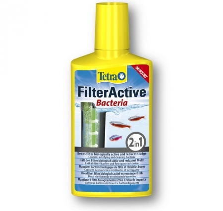 Tetra FilterActive — средство, которое добавляет высокоэффективные полезные живые бактерии, способствуя, тем самым, поддержанию нормальной биологической среды в аквариуме. Благодаря специальному составу средство активно ускоряет разложение вредных веществ, например, нитрита и аммиака. Более того, в ходе применения Tetra FilterActive помогает оптимизировать очищающие возможности фильтра для улучшения уровня чистоты воды. Применяя данное средство, вы сможете поддерживать хорошие показатели воды, за счет чего рыбы будут чувствовать себя намного лучше. Также Tetra FilterActive отлично подойдет в случае проведения технического обслуживания или смены воды — средство поможет улучшить фильтрацию.