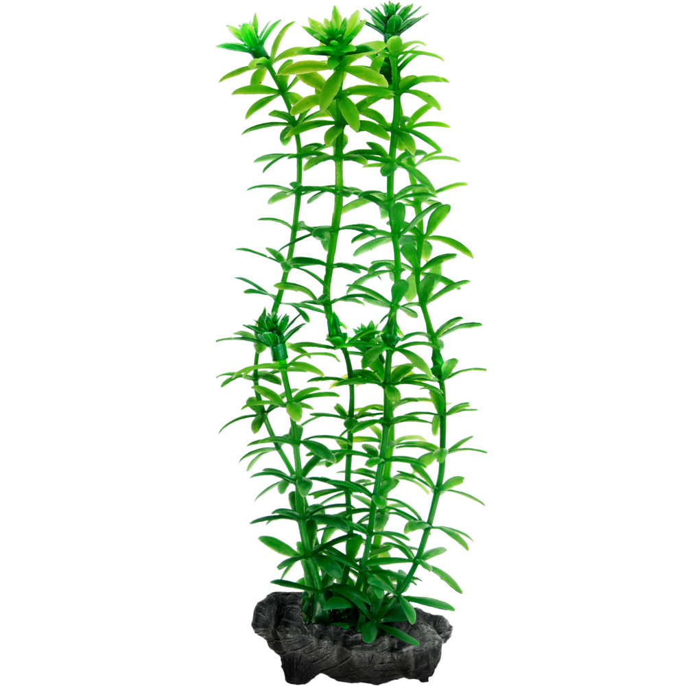 Естественно выглядящая искусственная копия водного растения анахарис. Это водное растение, также известное под названием «водяная чума», отличается звездообразными листьями, удлиненной формой и светло-зеленым цветом.
