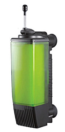 Фильтр устанавливается в аквариуме при помощи присосок. Особенностью конструкции является то, что корпус с помпой остается в аквариуме, в то время как стакан фильтра снимается вместе с губкой для очистки. Укомплектован губкой для механической и биологической очистки воды. Фильтр оснащен надежным и компактным приспособлением для крепления. Помпа через дно всасывает воду и прогоняет ее через фильтр-губку. Затем, очищенная вода возвращается в бак через регулируемое сопло.