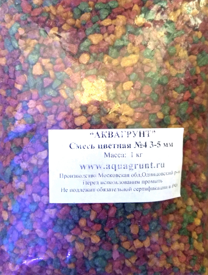 Грунт для аквариума цветной 3-5 мм, 1 кг.