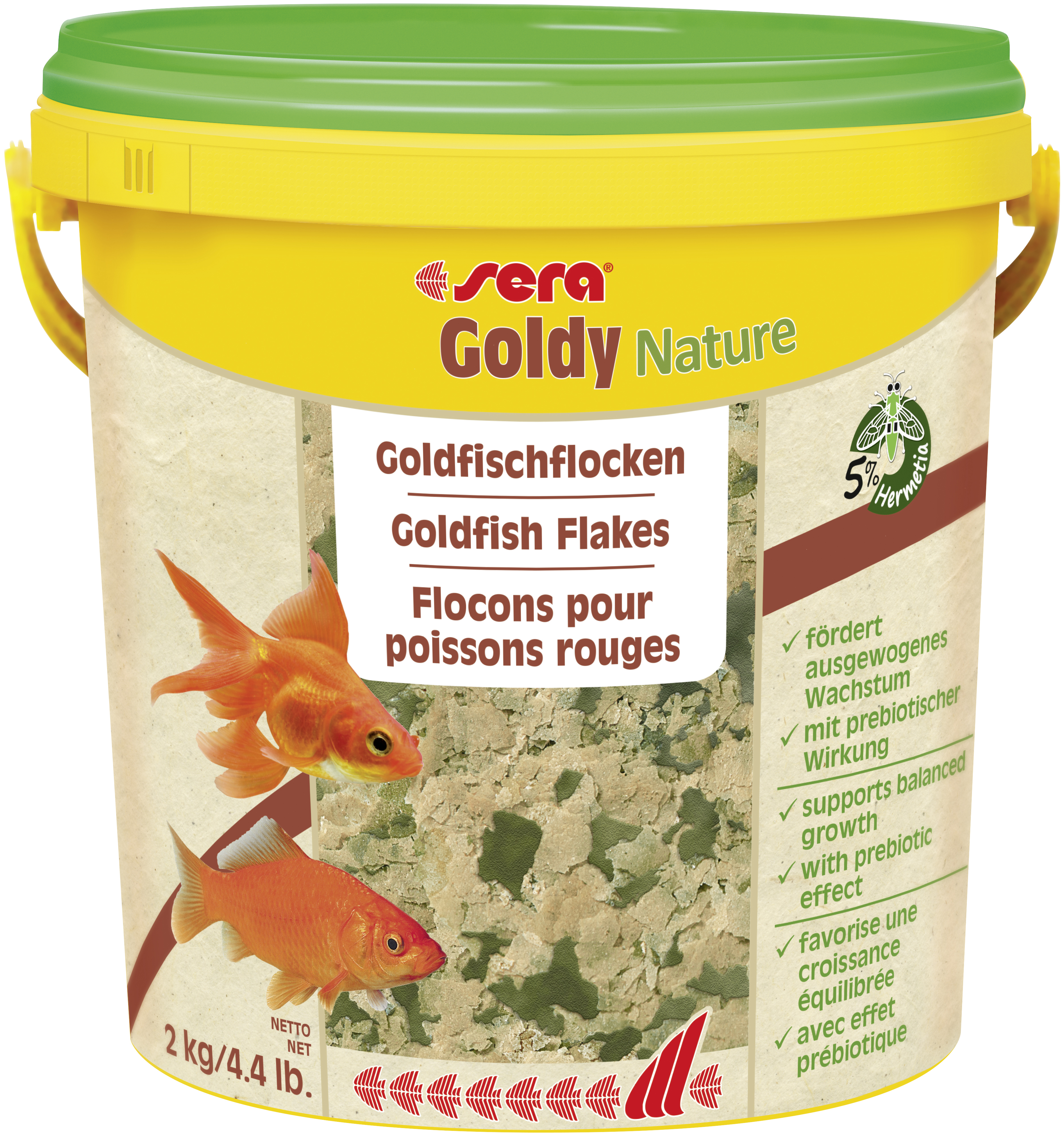 Sera голди Nature - является основным кормом для небольших золотых рыбок и их видов, таких как шубункины, вуалехвосты, кометы а также других холодноводных рыб, не содержащим красителей и консервантов.