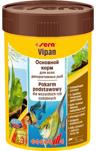 Sera Vipan - хлопьевидный корм для декоративных рыб в аквариумах со смешанным сообществом.