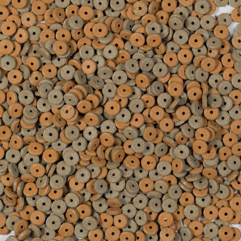 - Корм в виде двухцветных приклеивающихся таблеток для усиления яркости окраски и повышения жизненных сил рыбок.