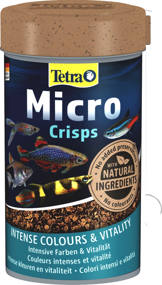 Tetra Micro Crisps — это высокопитательный полноценный корм для мелких декоративных рыб, изготовленный с использованием бережного процесса производства, — поддерживает яркость окраски и иммунную систему