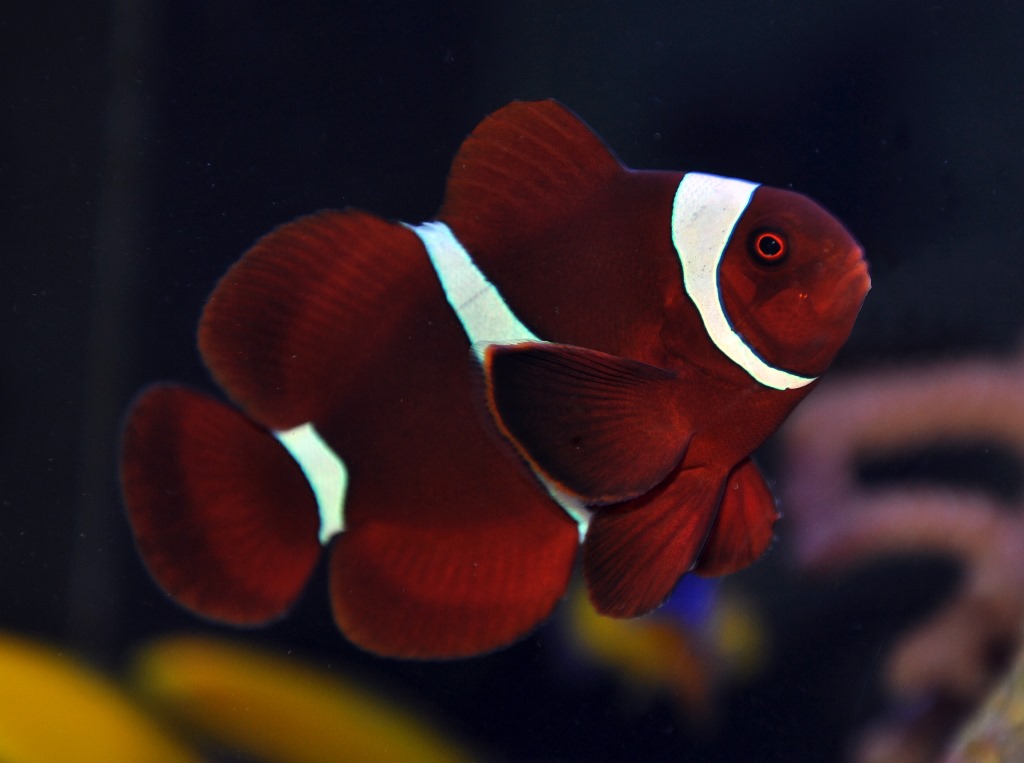 Температура воды в аквариуме должна быть 22°C - 26°C, плотность 1.02-1.025. Размеры тела могут достигать 17 см. У некоторых экземпляров окраска поперечной полосы может варьировать от чисто белой до золотисто-желтой. Окраска полосы варьирует в зависимости от состава пищи и возраста. Эта рыба, одна из немногих, которые в течение жизни могут изменять пол. В случае смерти самки, наиболее крупный самец в группе, сам может стать самкой. В природе премнасы часто образуют симбиотические связи с актинией Entacmaea quadricolor. Окраска молоди и самцов яркая и привлекательная, обычно ярко-красная или красно-коричневая. Самки с возрастом становятся из темно-красных почти черными. Территориальный и агрессивный вид, может жить в симбиозе с актинией, в паре и один. Без колебаний защищает свою территорию от рыбы больше, чем они сами. Мавританские желтополосыей клоуны выносливые рыбы и содержать их в аквариуме достаточно просто.