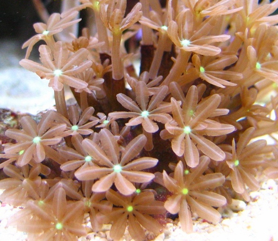 Knopia сравнительно неплохо адаптируется к условиям в аквариума, неагрессивна по отношению к соседям и прекрасно подходит для рифового аквариума. Это колониальное животное легкое в содержании, требует умеренного освещения в сочетании с умеренным движением воды. Для нормального роста в воду необходимо добавлять йод и другие микроэлементы. В устоявшемся рифе быстро растут.