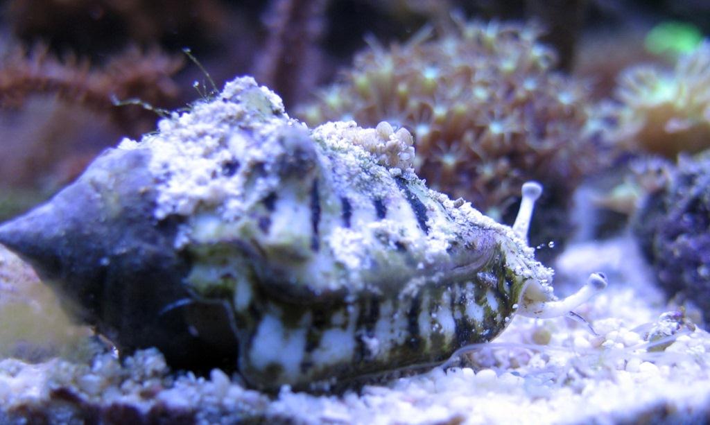 Стромбус - растительноядный брюхоногий моллюск, часто зарывающийся в песок, что позволяет избежать заиливания и возникновения застойных зон. Питается водорослями, растущими на грунте, камнях, стенках аквариума. Ведут дневной образ жизни. Никогда не побеспокоят кораллы и других беспозвоночных.