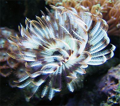 Веерный червь селится обычно в щелях между камнями и полостях на коралловых рифах. Живет в трубке, которую изготавливает из частичек ила. В длину трубка может достигать до 20 см, диаметр 1-2 см. Окраска венчика варьирует индивидуально, обычно не очень яркая, но разноцветная. Присутствуют бежевые, желтые, лиловые цвета, более темные участки чередуются с белыми зонами. Питаются планктоном, который вылавливают из толщи воды щупальцами. В качестве дополнительного питания можно добавлять фитопланктон и планктонные корма животного происхождения, а также корма для кораллов. Оптимальным вариантом для содержания является зрелый аквариум с живыми камнями и богатой микрофауной. Умеренная циркуляция должна обеспечивать постоянную смену приносящей корм воды вокруг венчика. Освещение не играет существенной роли.