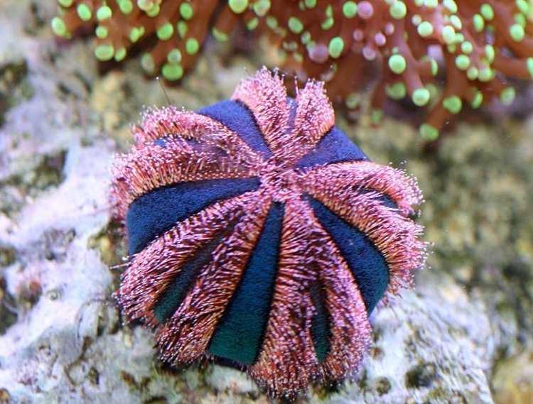 Неприхотливый и легкий в содержании вид. Самым подходящим для него является зрелый аквариум с большим количеством живых камней и богатой микрофлорой. В неволе поедают практически любые водоросли, развивающиеся в аквариуме, в том числе и красные известковые. При недостатке водорослей, его следует подкармливать сухими кормами для травоядных. Один из наиболее подходящих видов ежей для рифового аквариума, даже при недостатке пищи не повреждает кораллы и других сидячих беспозвоночных. Часто декорирует себя обрывками водорослей, частичками грунта и другими материалами.