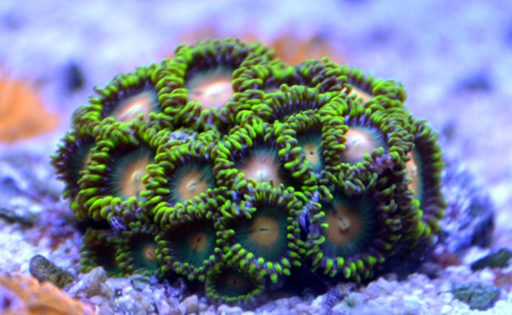Зоантусы являются одними из самых красочных жителей морского аквариума. Очень выносливы. Хорошо себя чувствуют практически в любом рифовом аквариуме. Предпочитают уровень освещенности от яркого до среднего, но выживают даже при низких уровнях освещенности. Течение от низкого до среднего. Комфортная темепература воды аквариума от 24 до 29 градусов по Цельсию. Ножка полипа этого коралла, также как и диаметр ротового диска, достигает двух сантиметров. Из частичек твердого субстрата и песчинок они строят что-то наподобие твердого основания — и в итоге колония может принять эффектную шарообразную форму. Полипы растут плотно друг к другу, что придает еще больший эффект. Чтобы увидеть истинное лицо зоантусов и палитоя, их лучше всего рассматривать под чисто актиническим освещением. Их яркие флюоресцентные краски никого не оставят равнодушным. При нормальных условиях зоантусы быстро размножаются в аквариуме.
