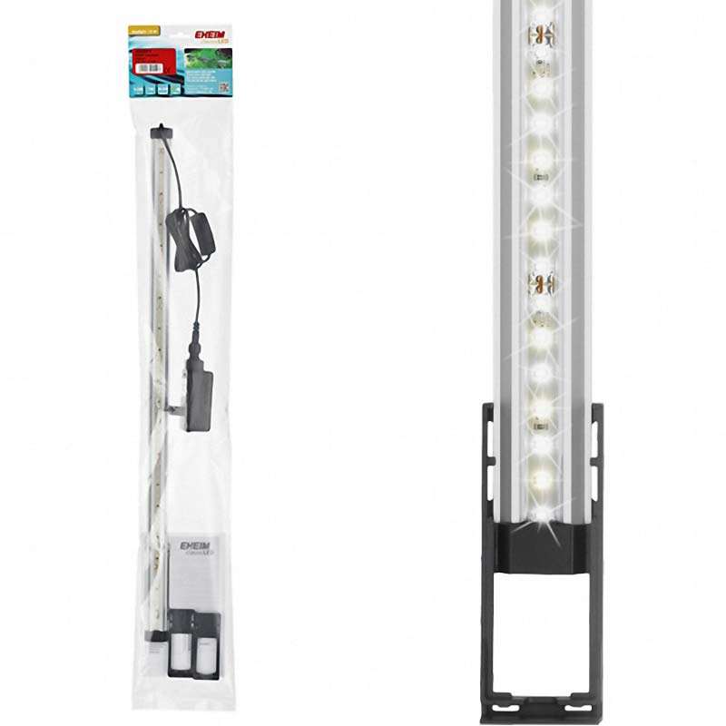 EHEIM classic LED - это современное светодиодное освещение для всех пресноводных аквариумов. Светильник выполненное из тонкого алюминиевого профиля, выпускается в четырех длинах 550, 740, 940 и 1140 миллиметров и легко устанавливается с помощью выдвижного монтажного кронштейна. Светодиодная лента идеально адаптируется к любому аквариуму шириной до 1,20 м, обеспечивая оптимальное освещение с углом луча 120 °, вплоть до дна аквариума. Ультра компактный и очень тонкий дизайн подходит для всех покрытий и поэтому может использоваться для большинства аквариумов. При дневном свете подобная цветовая температура 6500 Кельвин, EHEIM classic LED обеспечивает здоровый рост, а также приятные цвета рыбы и растений.