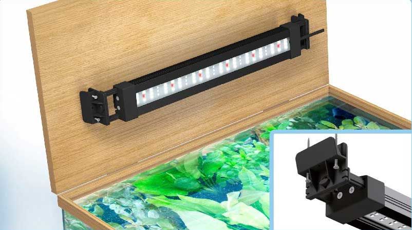 Регулируемые выдвижные удлинители позволяют увеличить длину светодиодного светильника на 12 см с каждой стороны, чтобы можно было отрегулировать его в соответствии с размером вашего аквариума.