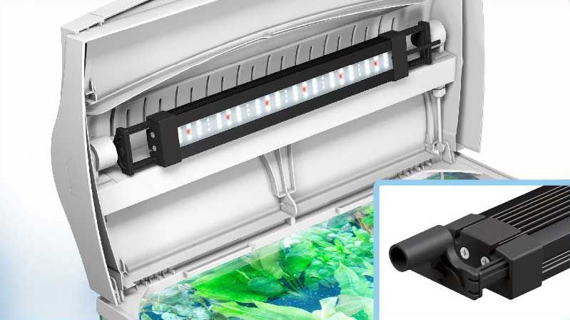 Инновационные светодиоды излучают широкий световой спектр в вашем аквариуме, что способствует образованию хлорофилла и таким образом усиливает рост растений. Помимо широкого светового спектра, светодиодные лампы также излучают цветовую температуру (6000 кельвинов), подобную дневному свету. Благодаря этому цвета в аквариуме становятся очень естественными и насыщенными. Встроенный ночной режим обеспечивает мягкое синее свечение в аквариуме в вечернее и ночное время.