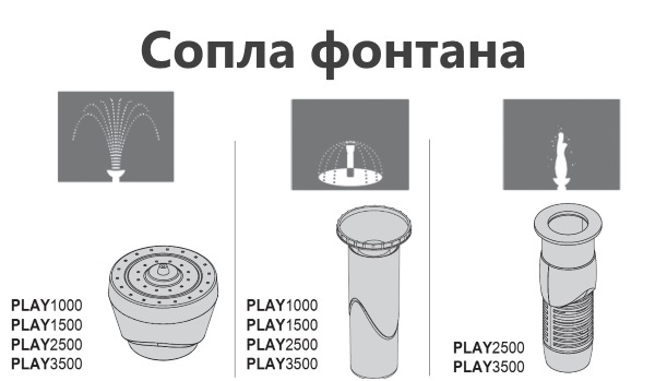 EHEIM PLAY 1500 - Ультракомпактный функциональный водяной насос для прудов и водоемов. Его особенностью является возможность подачи небольших струй воды, а так же сменные насадки с разными типами выброса воды.