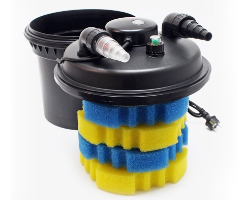 Температура воды в фильтре не должна превышать 40 ° C. Поэтому целесообразно разместить фильтр в тени. Он не должен подвергаться воздействию прямых солнечных лучей. UV- лампа разрушает клетки бактерий и одноклеточных водорослей при прохождении воды через отсек. Подвергшись действию ультрафиолета, бактерии и водоросли сбиваются в более крупные конгломераты и оседают на поверхностях фильтрующих губок, где подвергаются утилизации уже микрофлорой фильтра. Это один из этапов биофильтрации. Там же оседает и весь мелкий и средний мусор, взвесь, находящаяся в воде. Это этап механической фильтрации. Фильтр с механической и биологической фильтрацией обеспечивает здоровый баланс микрофлоры пруда и стабильное качество воды.