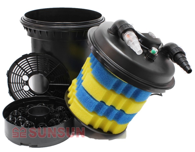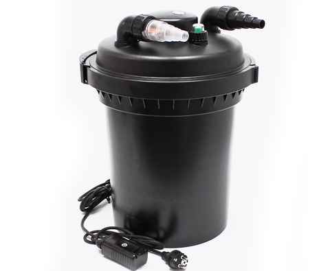 Температура воды в фильтре не должна превышать 40 ° C. Поэтому целесообразно разместить фильтр в тени. Он не должен подвергаться воздействию прямых солнечных лучей. UV- лампа разрушает клетки бактерий и одноклеточных водорослей при прохождении воды через отсек. Подвергшись действию ультрафиолета, бактерии и водоросли сбиваются в более крупные конгломераты и оседают на поверхностях фильтрующих губок, где подвергаются утилизации уже микрофлорой фильтра. Это один из этапов биофильтрации. Там же оседает и весь мелкий и средний мусор, взвесь, находящаяся в воде. Это этап механической фильтрации. Фильтр с механической и биологической фильтрацией обеспечивает здоровый баланс микрофлоры пруда и стабильное качество воды.