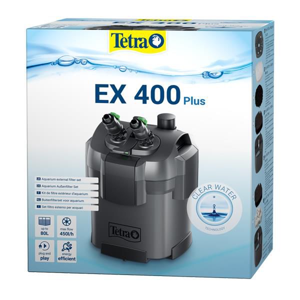 Tetra EX 400 Plus обеспечивает эффективную очистку воды в любом типе аквариума. Загрязненная вода в аквариуме очищается благодаря различным видам фильтрующих элементов. Вода проходит через био-шарики, керамические кольца, стандартную фильтрующую губку, угольный наполнитель и мелкопористую губку. Фильтрующие элементы удаляют различные частицы грязи и обеспечивают механическую биологическую и химическую фильтрацию аквариумной воды.