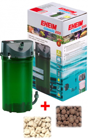 Eheim Classic 250 - 2213, - это инновационный, бесшумный, внешний канистровый фильтр Эхейм Классик. Эта модель включает в себя необходимые губки для биологической и механической очистки, а так же наполнители и субстраты Eheim Substrat Pro и Bio Mech. Идеальный для использования в пресноводных и морских аквариумах. Тихий в работе, надежный в эксплуатации, этот внешний канистровый фильтр лучший в соответствии "цена – качество".